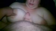 Ela é uma mulher madura que espera atingir o orgasmo com esse homem que masturba seus peitos enormes e a deixa chupar seu pau cheio.