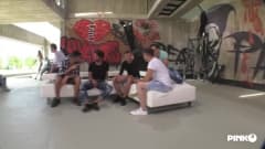 Os rapazes tinham que escolher uma garota para transar e essa sortuda estava muito feliz por estar ali, desfrutando de tantos paus a volta dela.