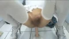Uma trans sexy se masturbando e brincando com o seu traseiro