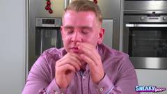 Derramar comida ou bebida em suas calças nem sempre leva ao sexo, mas nesse caso leva! Essa garota não pode ser parada!