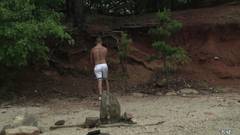 Um homem gay está passeando em seu barco quando vê um homem sexy correndo pela praia. Ele o persegue até conseguir chupar seu pau.