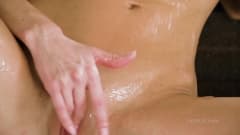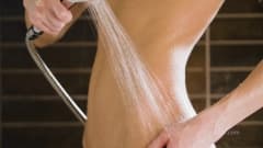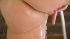 Gina Gerson não está apenas a tomar um duche porque também está a massajar intensamente a sua rata depilada!