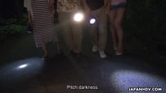 Dois casais asiáticos se divertem sutilmente no meio da noite. Eles têm uma boa sessão de sexo oral no meio do nada e se divertem muito.