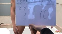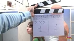 Uma morena muito jovem está filmando uma cena no banheiro. Com seios pequenos e bucetinha pequena, ela vai ser pega em todas as posições.