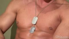 O militar Cavin Knight está no quartel e aproveita o fato de estar sozinho para se masturbar. Ele fica de costas para mostrar sua bunda aberta.