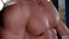 Este macho musculado está sozinho agora e é por isso que ele vai se masturbar em silêncio na academia antes que os outros cheguem!