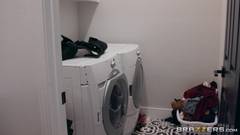 Vanessa Sky, morena sexy com uma bela bunda redonda, sendo fodida com força por um enorme pau branco depois de ter suas calças rasgadas