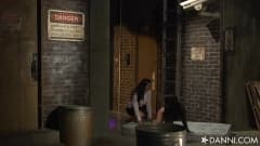 Esse guarda cheio de tesão pegou uma ladra supersexy tentando entrar no prédio e, para puni-la, obrigou-a a chupar sua buceta!