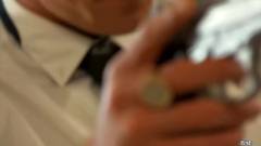Paddy O'Brian e Troy Daniels interpretam uma cena de reféns, com uma mistura de armas e caralhos. O cara vai ser totalmente dominado pelo sequestrador.