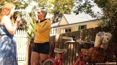 Resumindo a história! A jovem Chloe B espreita um cara pelado e se masturba num prado, depois ele transa com sua esposa.