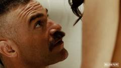 Emily Willis é surpreendida por seu chefe bigodudo que vai transar com ela e dominá-la enfiando o pau em sua bunda firme.