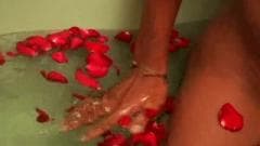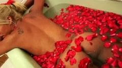 Depois do banho relaxante e cheio de sensualidade, uma trans loira se diverte metendo um dildo transparente no ânus, e se abrindo com os dedos!