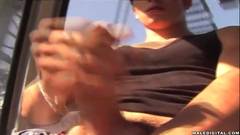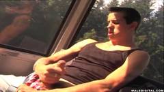 Depois de uma boa viagem e de apreciar a vista, o homem bonito chega em casa e começa a se masturbar intensamente. Coisa de tesão!