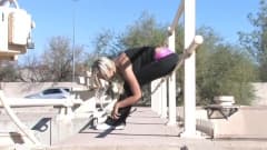 Essa loira é muito safada e, quando sai para correr, tira algumas de suas roupas para mostrar seu belo par de peitos a todos que passam por ela.