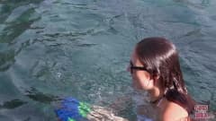 Ela passou um dia agradável com suas amigas na piscina e depois encontrou um lugar para se masturbar até gozar.