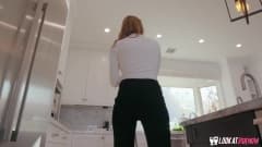Novinha loira magrinha paga um boquete com direito a garganta profunda bem gostoso para depois sentar bem fundo na grande pica do padrinho
