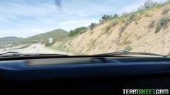 A linda morena Lucie Cline é levada por um estranho, e ela pagará com um belo boquete molhado.