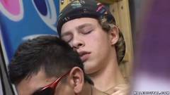 Este casal de amigos se divertiu muito esta tarde neste encontro em que o rapaz moreno com seus óculos escuros fode suavemente o lindo loiro