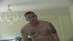 O sargento Dustin Cassidy quer relaxar depois de se exercitar e é por isso que ele está nu com o pênis nas mãos!