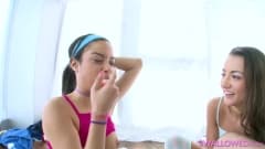 Lily Adams e Maya Bijou são duas garotinhas muito safadas que adoram lamber a buceta uma da outra e dividir um bom pau que elas chupam sem parar