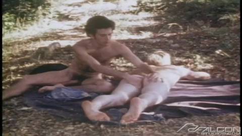 Esses dois garotos estão se divertindo na sombra dessa árvore! Observe-os chupando!