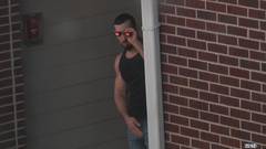 Ele estava espionando Johnny, mas quando o viu se despindo em frente à janela, perdeu o controle e chupou o pênis de Johnny.