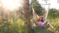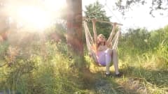 A doce Blue Mile anda livre e nua pelo campo. Veja-a se masturbar enquanto o sol se põe.