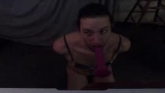 Garoto de lingerie chupa um vibrador em POV