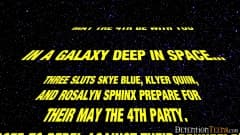 As três ninfetinhas bonitas vão fazer um cosplay de star wars para seduzir ao cara da administração. partilham a sua pila gostosa e se divertem muito.