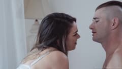 Novinha estava esperando seu namorado so de calsinha em sua cama para uma foda bem gostosa com direito a boquete de garganta profunda