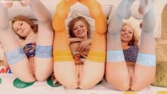 Três garotas gostosas, usando meias sexy e brincando no jogo twister ficam excitadas e começam a brincar com suas bucetas.