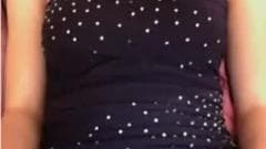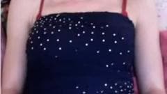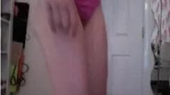 A garota começa o vídeo com um strip-tease e apalpa os seios. Quando ela tira a calcinha, ela se masturba sua linda buceta peluda.