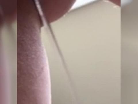 Parece bobo, mas na verdade o que essa mulher está pingando de sua vagina é seu próprio suco que fica pendurado sem quebrar por alguns minutos