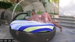 A bela Nikki Benz está transando com um homem negro na beira de uma piscina. O cara tem um pau enorme e ela geme ao senti-lo dentro dela.