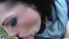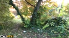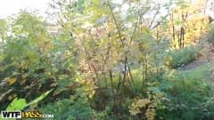 Uma linda garota transando no meio do mato com seu namorado sortudo.. a safada chupa o pau do namorado e depois da a buceta gostosa