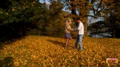 A Marry Queen vai passar suas férias de outono em uma cabana. Seu travesti começa a transar com ela ao ar livre em um lugar romântico