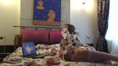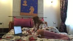 Assistindo pornografia, a garota fica excitada, fica nua, mostra seu corpinho incrível e se masturba. No final, ela vai correr intensamente como louca