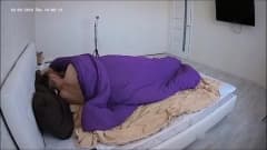 Jovem amadora de cabelos curtos na cama com seu namorado