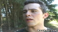 O comandante o encontrou fora do grupo em seu uniforme rasgado e o fez chupar seu pau antes de foder seu traseiro apertado lá fora.