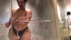 Amadora BBW se exibindo no duche enquanto toma um banho quentinho