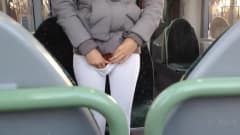 A morena marota se sente excitada e chupa o pinto dele no ônibus e recebe seu esperma na boca dela para ela engolir completo