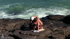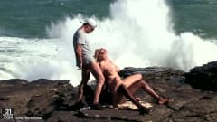 Dois homens muito bem dotados e uma loira sedenta por pica transam nesse trio em um penhasco à beira-mar. Uma cena muito quente!