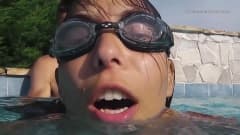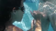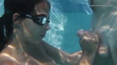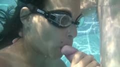 Esse casal grava um vídeo muito interessante: uma sessão de sexo embaixo d'água. Ela chupa o pau dele debaixo d'água e o faz gozar e tocar o sêmen.