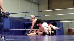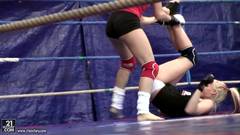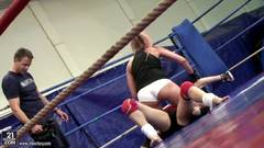 Duas lindas garotas vao lutar corpo a corpo. Ao sentir-se tao perto vão ficar empolgadas e acabam dando uma foda nos vestiários