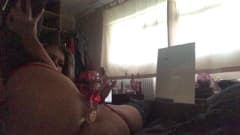 Em casa, sem nada melhor para fazer com seus brinquedos sexuais
