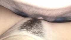 Essa linda vagabunda engole o pau com a boca e a buceta peluda