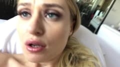 Aqui está uma loira feliz em se tocar para nós! Ela se filma acariciando suas belas curvas!