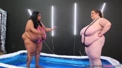 Duas enormes BBW quentes fazem luta livre e atacam o árbitro
