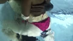 A loira chupa e masturba o pau do seu homem na hidromassagem