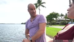 Novinha tetuda safada grandona recebe uma foda bem gostosa do careca da pica grande e grossa que penetrou com força na busetona dela